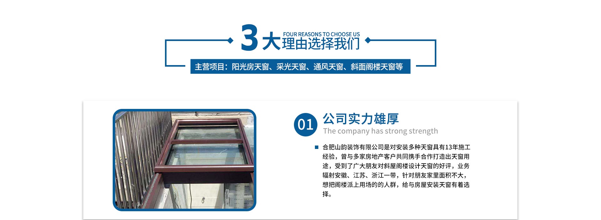 合肥山韻裝飾有限公司是對安裝多種天窗具有13年施工經驗,曾與多家房地產客戶共同攜手合作打造出天窗用途,受到了廣大朋友對斜屋閣樓設計天窗的好評,業務輻射安徽、江蘇、浙江一帶,針對朋友家里面積不大,想把閣樓派上用場的的人群,給與房屋安裝天窗有著選擇。